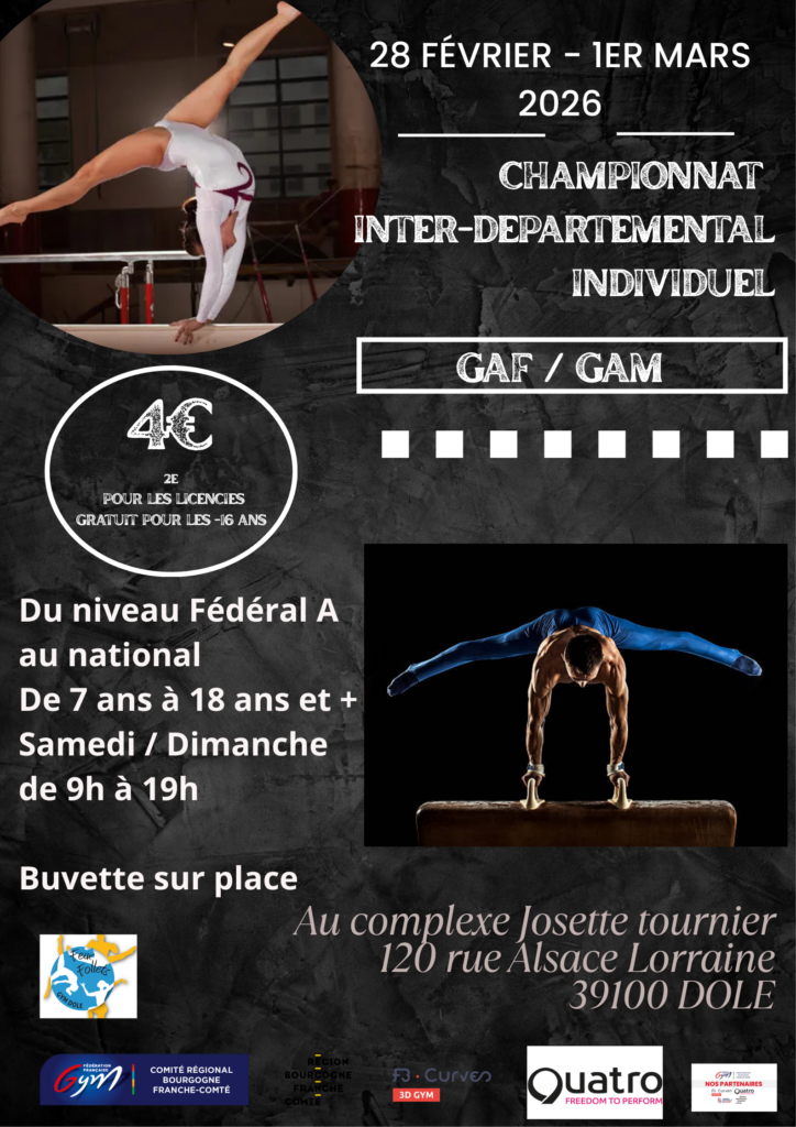 Rendez-vous le Week-end du 28 Février-1er Mars pour venir encourager nos gyms lors de leur championnat inter-départemental Individuel à Dole.